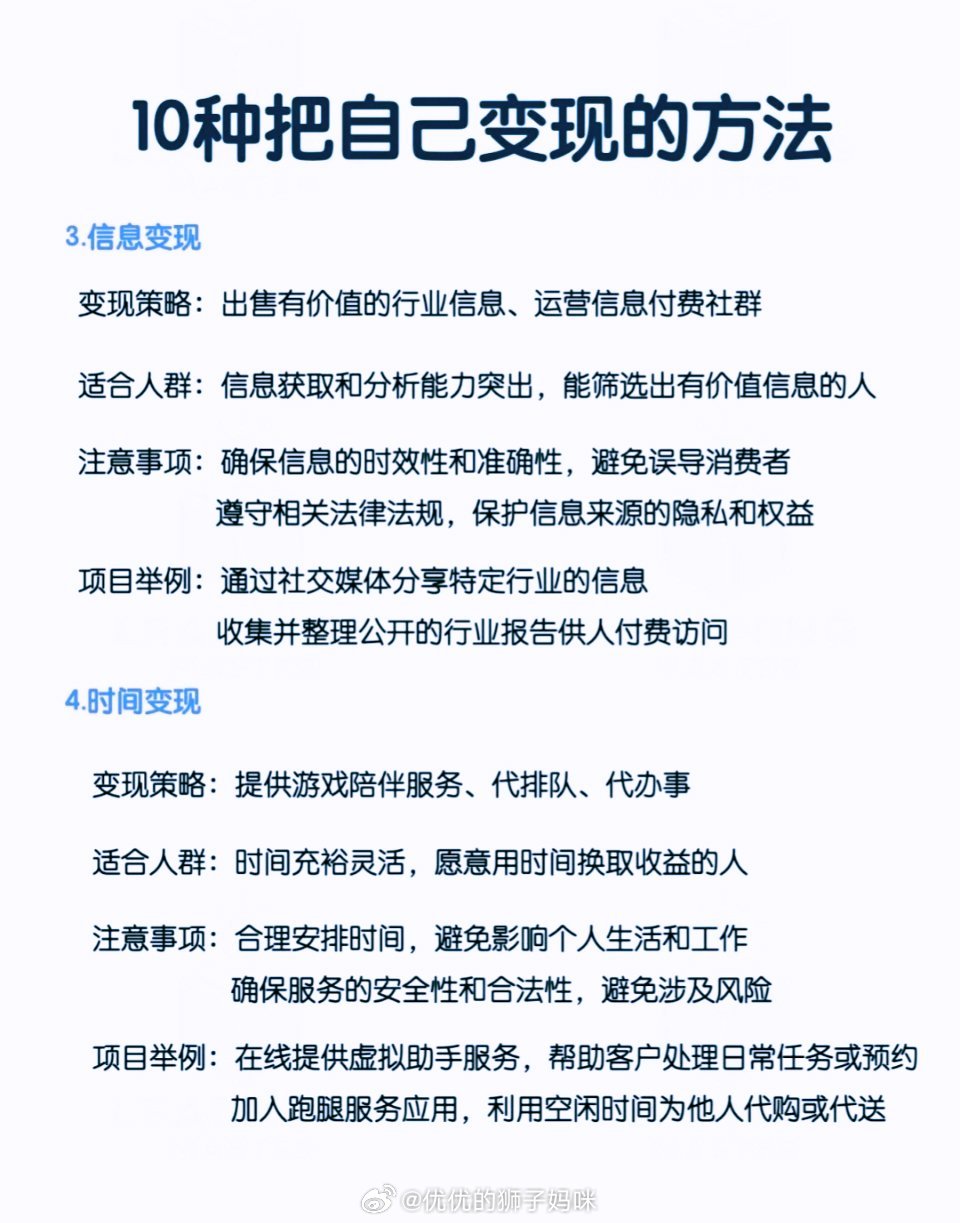 隨著科技的飛速發(fā)展和互聯(lián)網(wǎng)的普及,變現(xiàn)方式也在不斷革新,在這個信息爆炸的時代,如何有效利用資源,實現(xiàn)財富的快速增長,已成為眾多人士關(guān)注的焦點,本文將為您揭示最新變現(xiàn)方法,助您掌握時代潮流下的財富增長策略,輕松實現(xiàn)變現(xiàn)夢想。